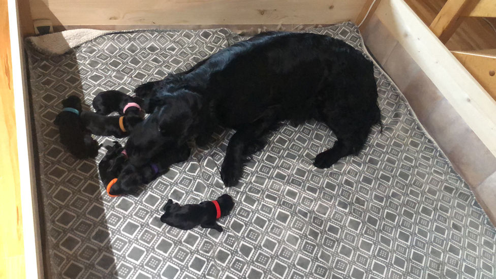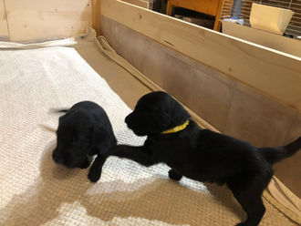 Dne 6. května 2024 v odpoledních hodinách přivedla Jackie na svět 11 černých klubíček. Máme pět holek a šest kluků. K odběru budou štěňata odčervená, očkovaná a čipovaná s PP začátkem července 2024.